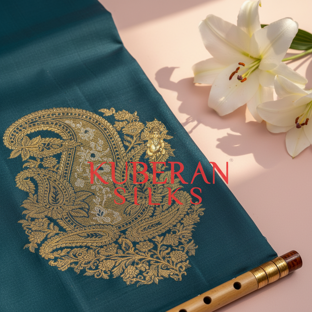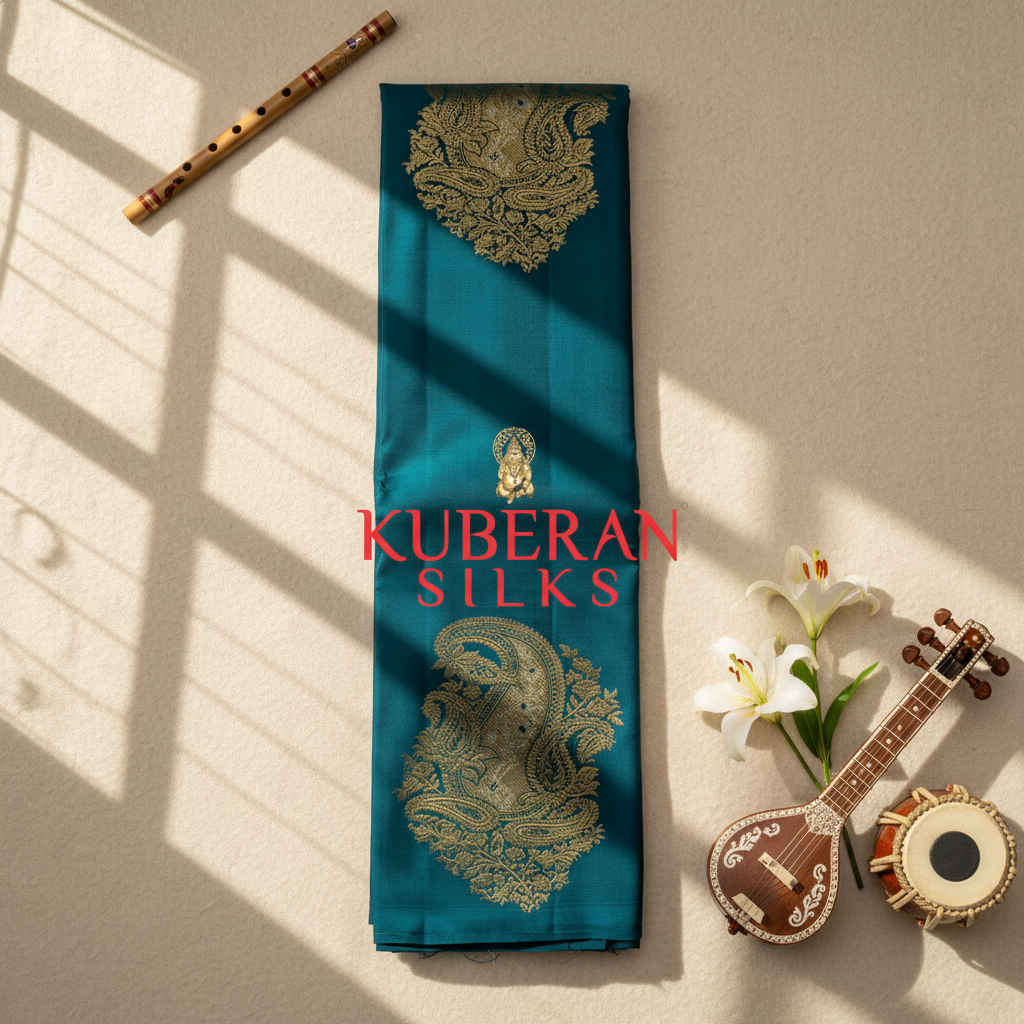 Kuberan Teal Kanchipuram Silk Saree.