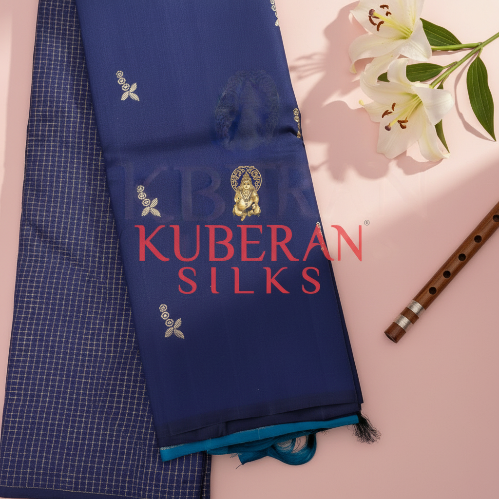 Kuberan Navy Blue Kanchipuram Silk Saree.