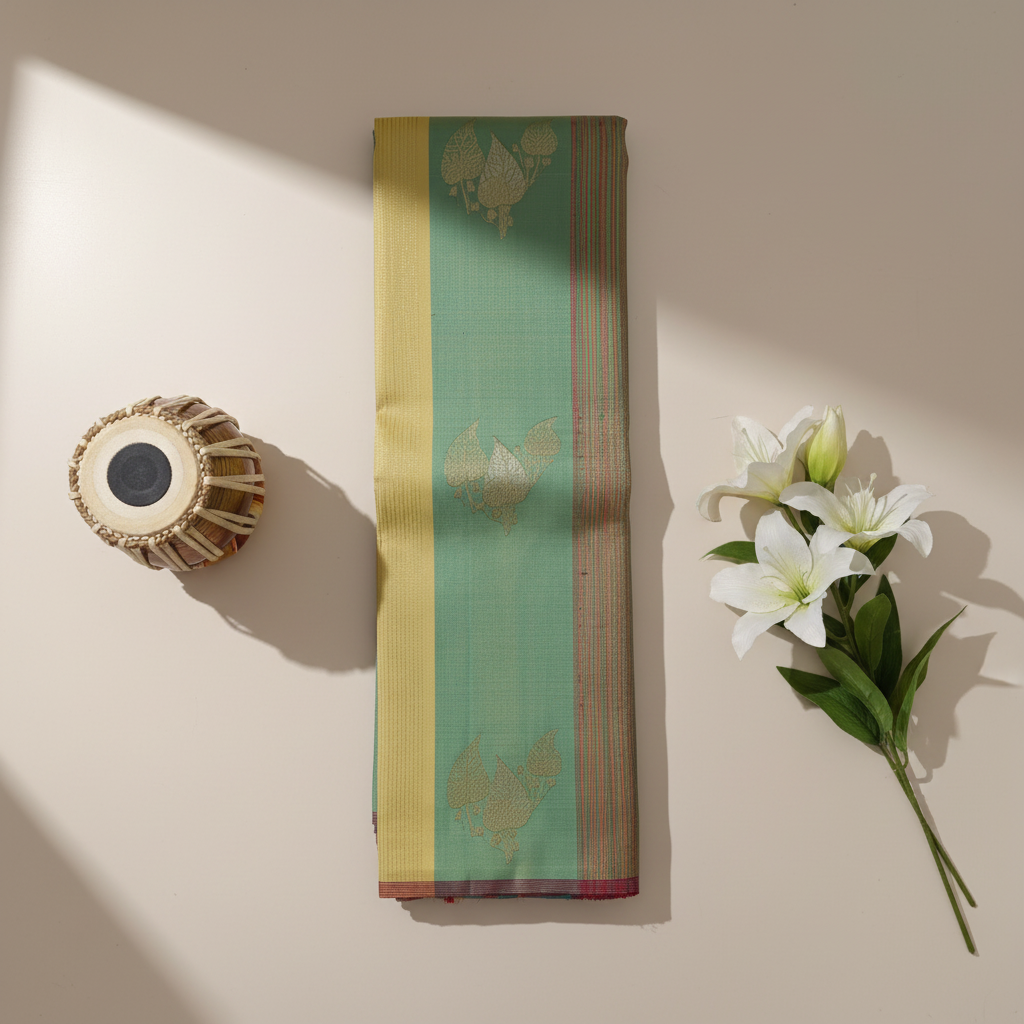 Kuberan Sea Green Floral Kanchipuram Silk Saree