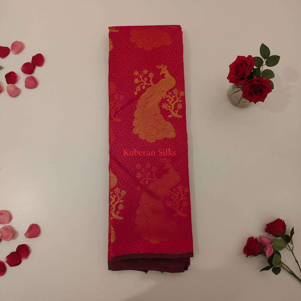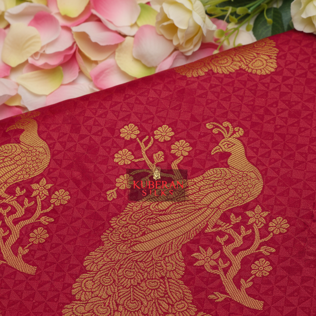 Kuberan Red Gold Peacock Kanchipuram Silk Saree