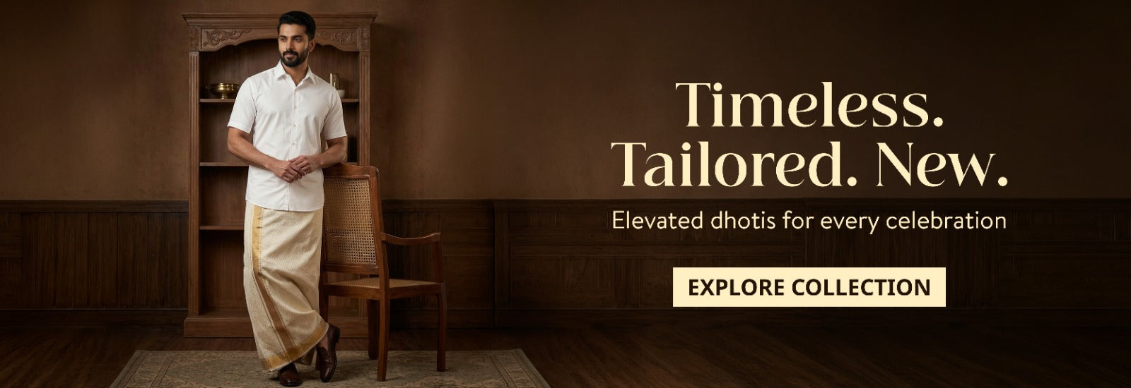 Kuberan Pure Silk Dhoti – Cream with Gold Zari Border (Chevron Weave)