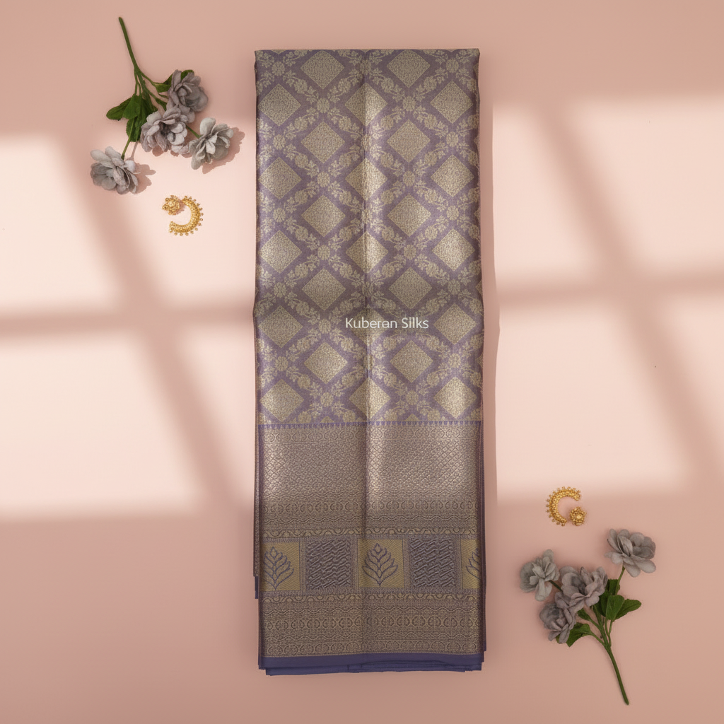 Kuberan lavender Diamond Pattern Kanchipuram Silk Saree