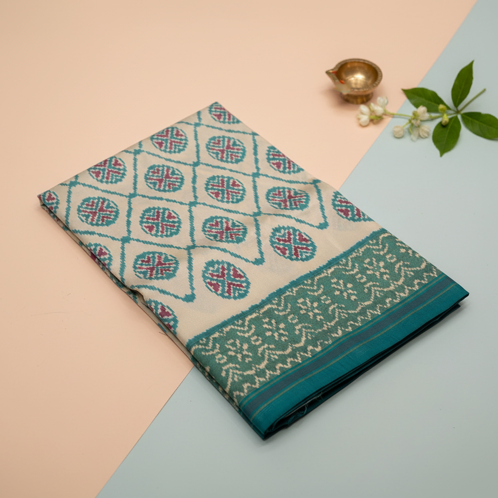 KUBERAN OFF WHITE POCHAMPALLY SILK SAREE