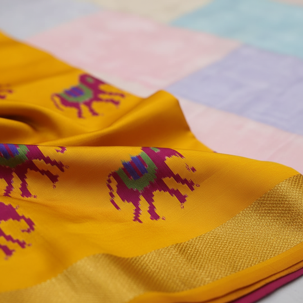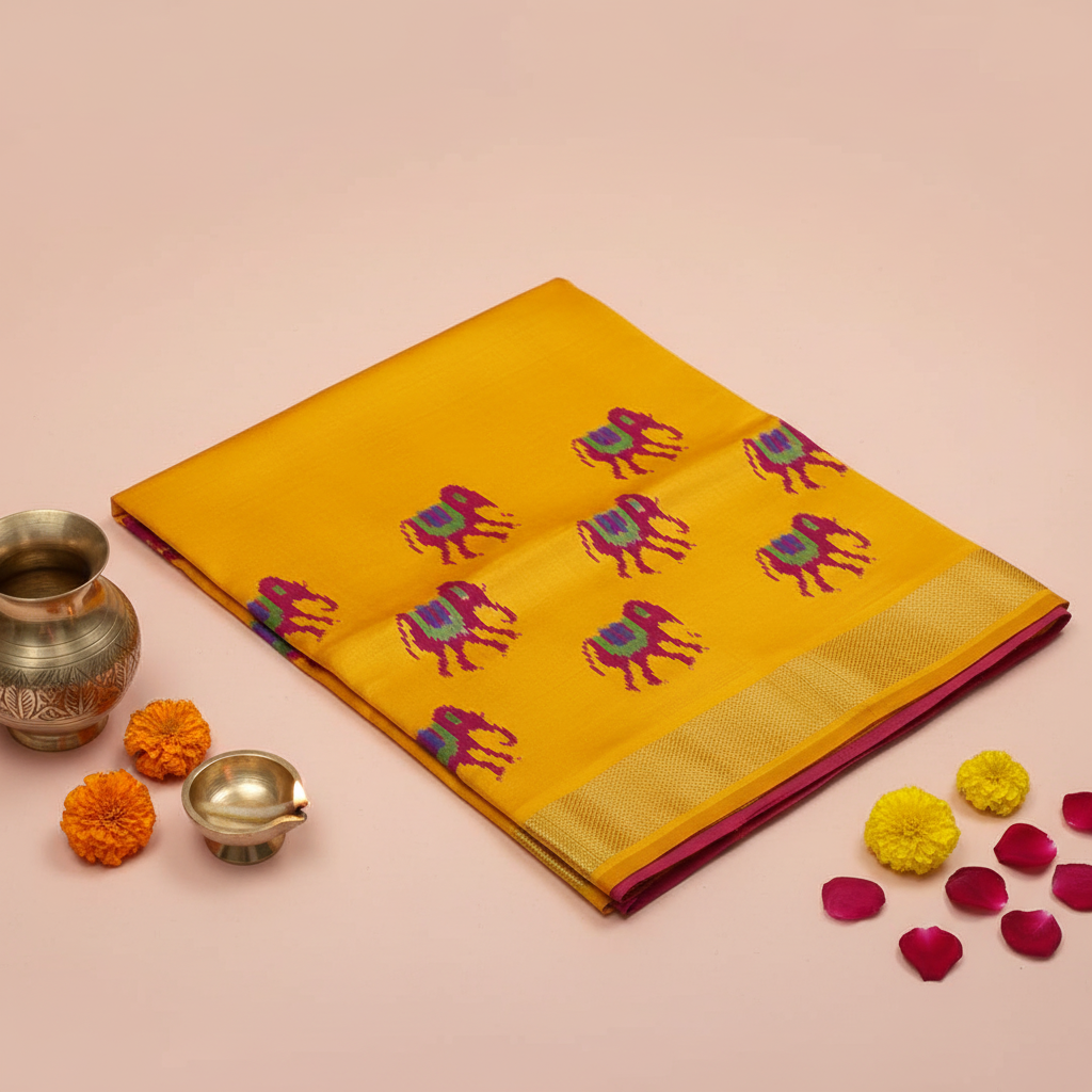 Kuberan Golden Yellow Ikat Silk Saree