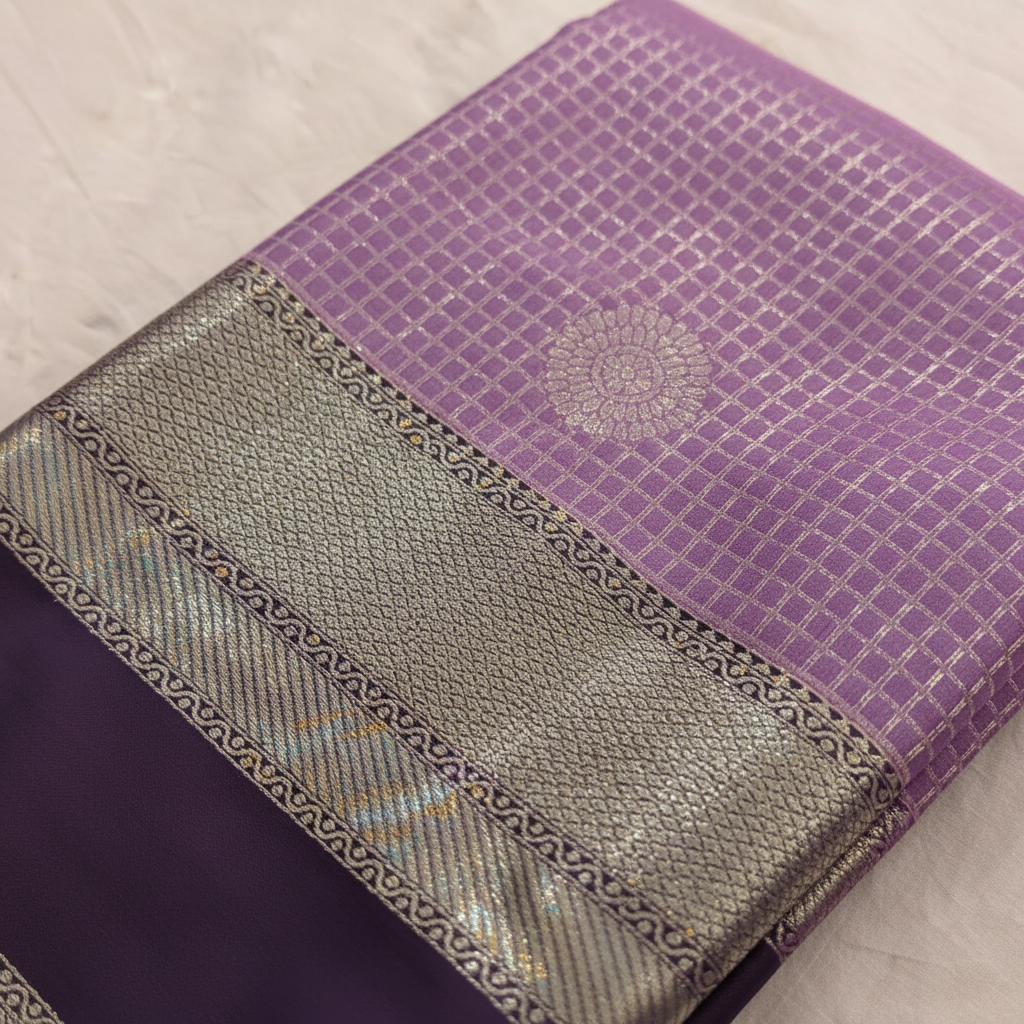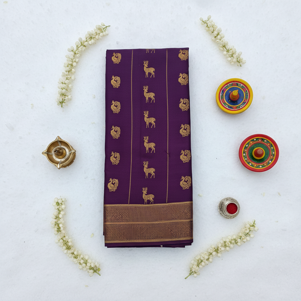 kuberan Purple with Deer and Peacock Motifs Mysore Silk Saree