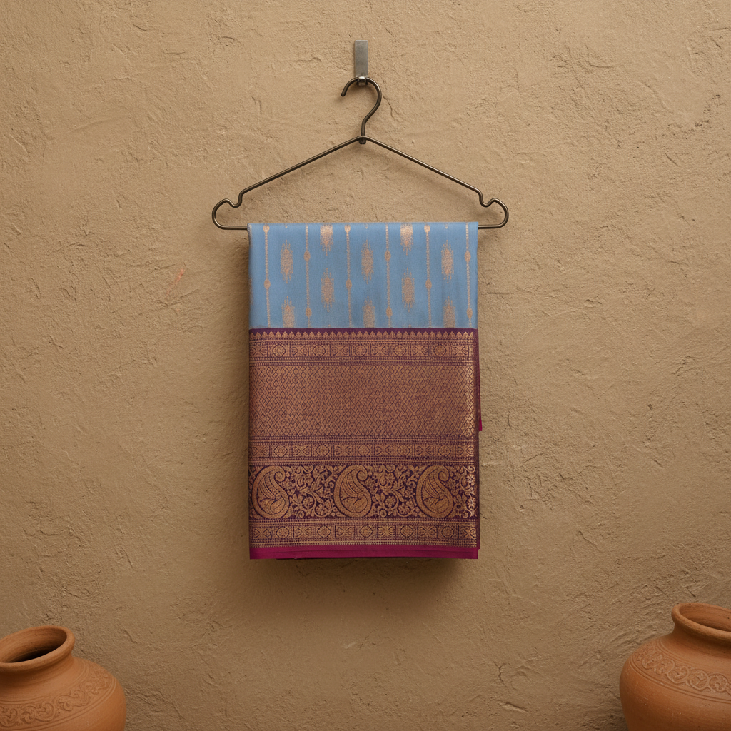 KUBERAN METALLIC BLUE SEMI SILK SAREE