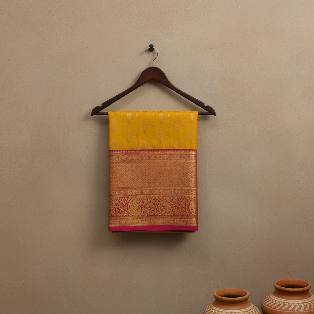 KUBERAN YELLOW PINK SEMI SILK SAREE