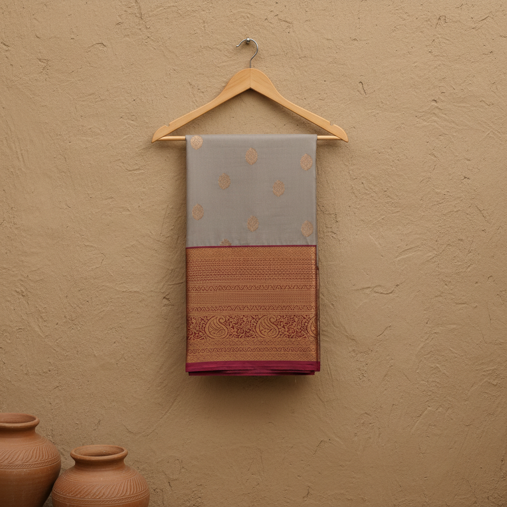 KUBERAN CEMENT GREY SEMI SILK SAREE