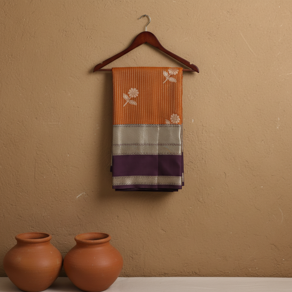 KUBERAN RUST ORANGE SEMI SILK SAREE