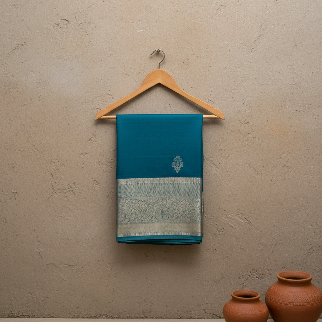 KUBERAN TEAL BLUE SEMI SILK SAREE