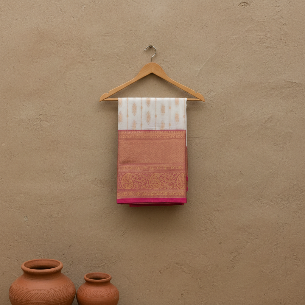 KUBERAN WHITE PINK SEMI SILK SAREE