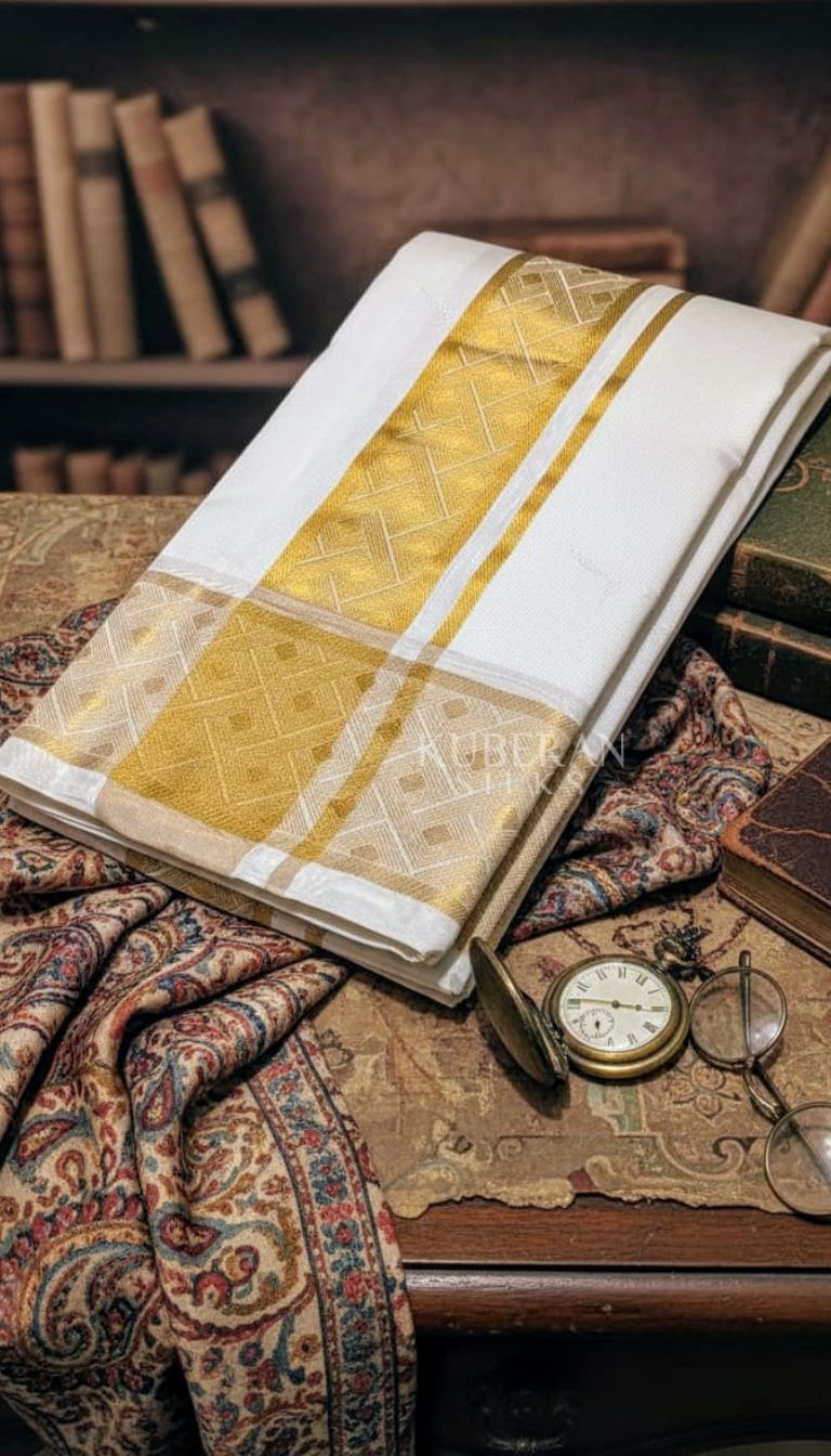 KUBERAN WHITE COLOUR WITH GLOD BORDER PURE SILK DHOTI