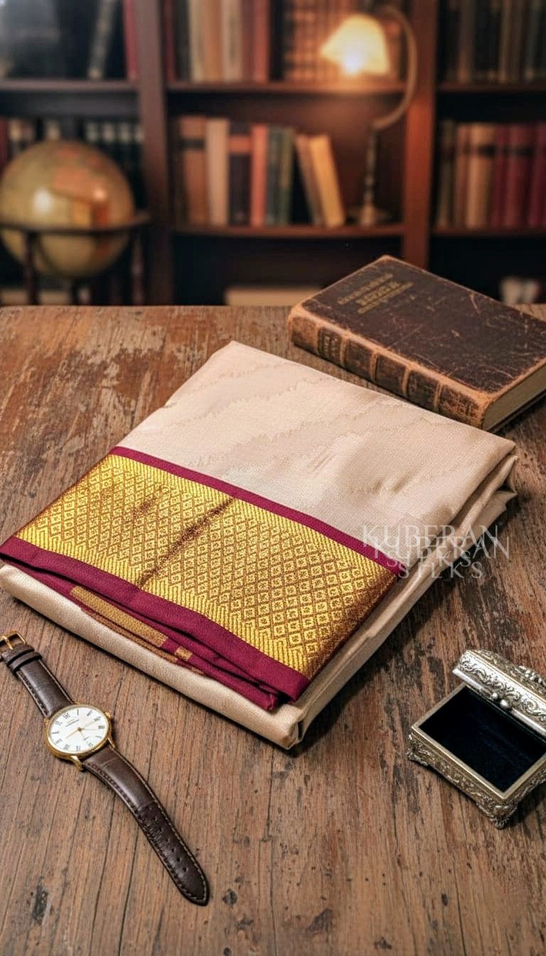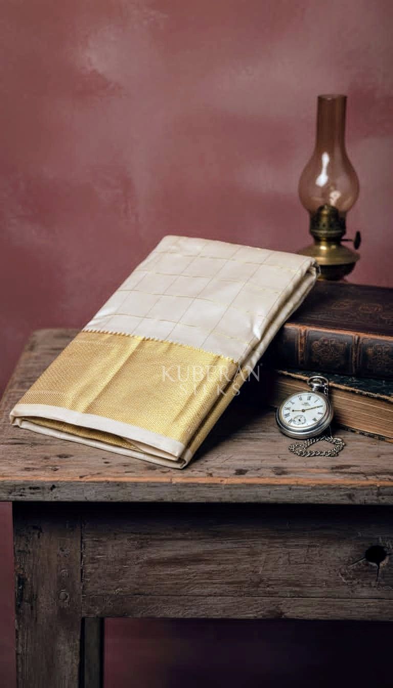 KUBERAN CRERAM COLOUR WITH GOLD BORDER PURE SILK DHOTI