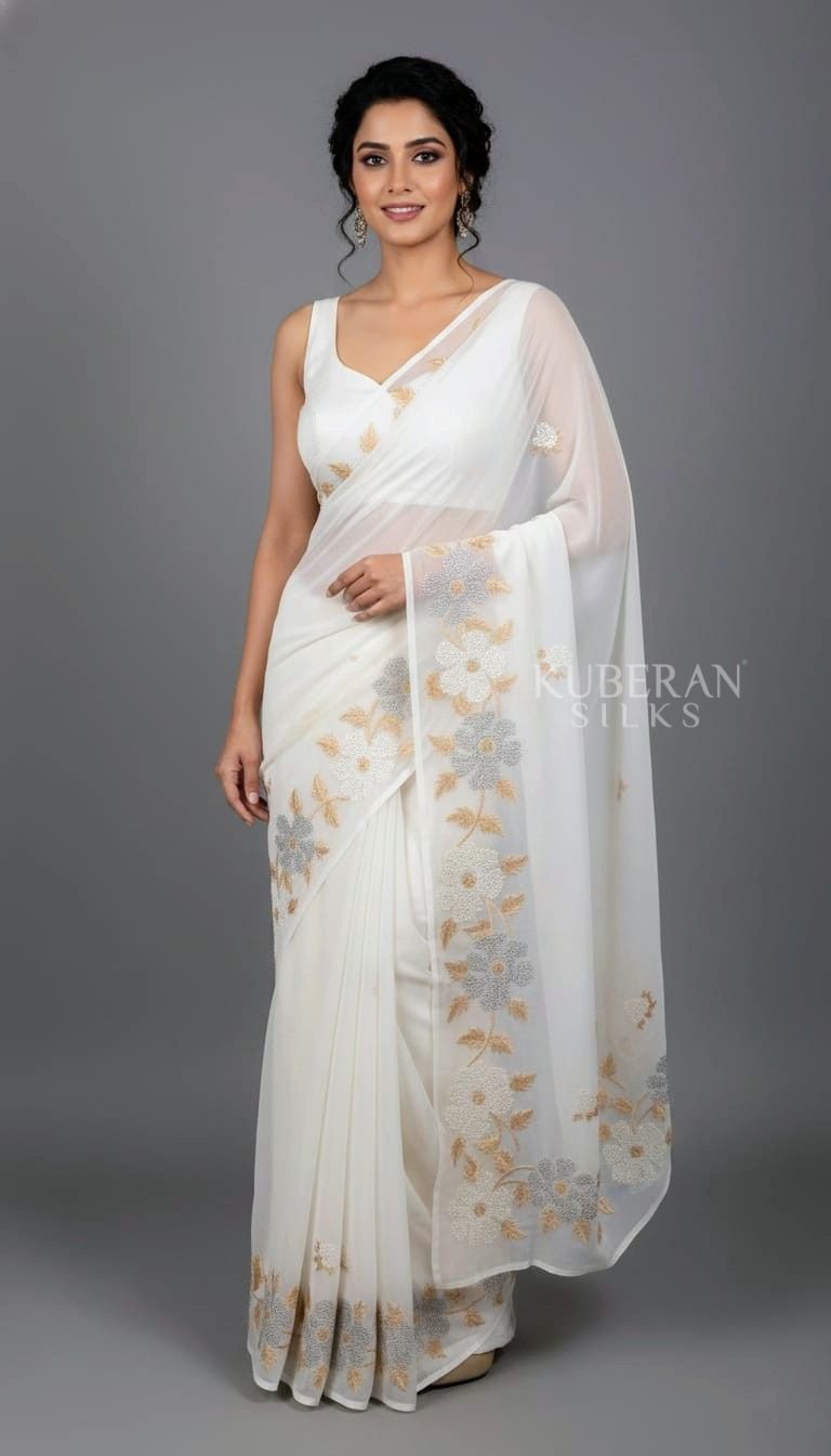 KUBERAN WHITE CHIFFON SAREE