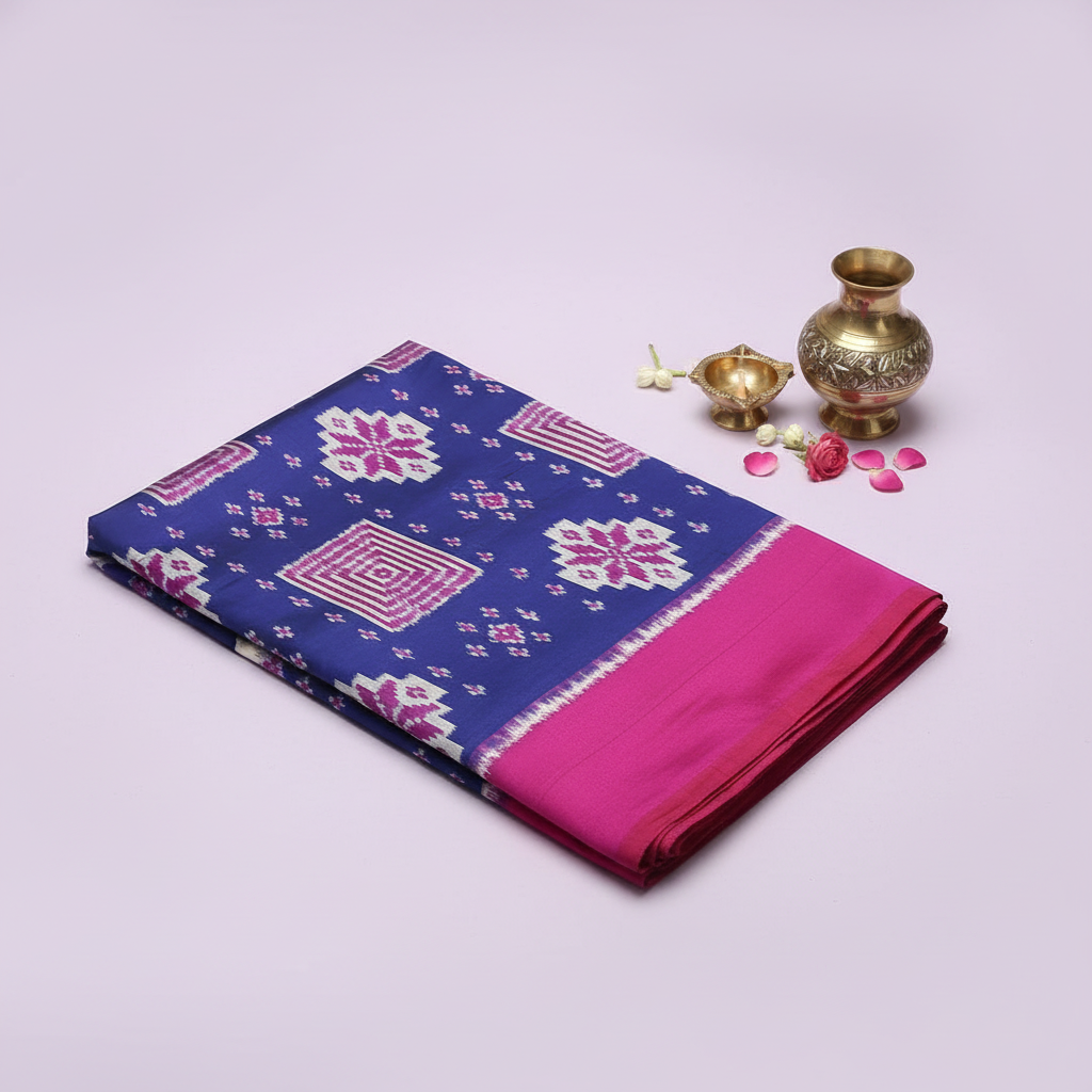 Royal Blue with Pink Border Ikat SILK SAREE