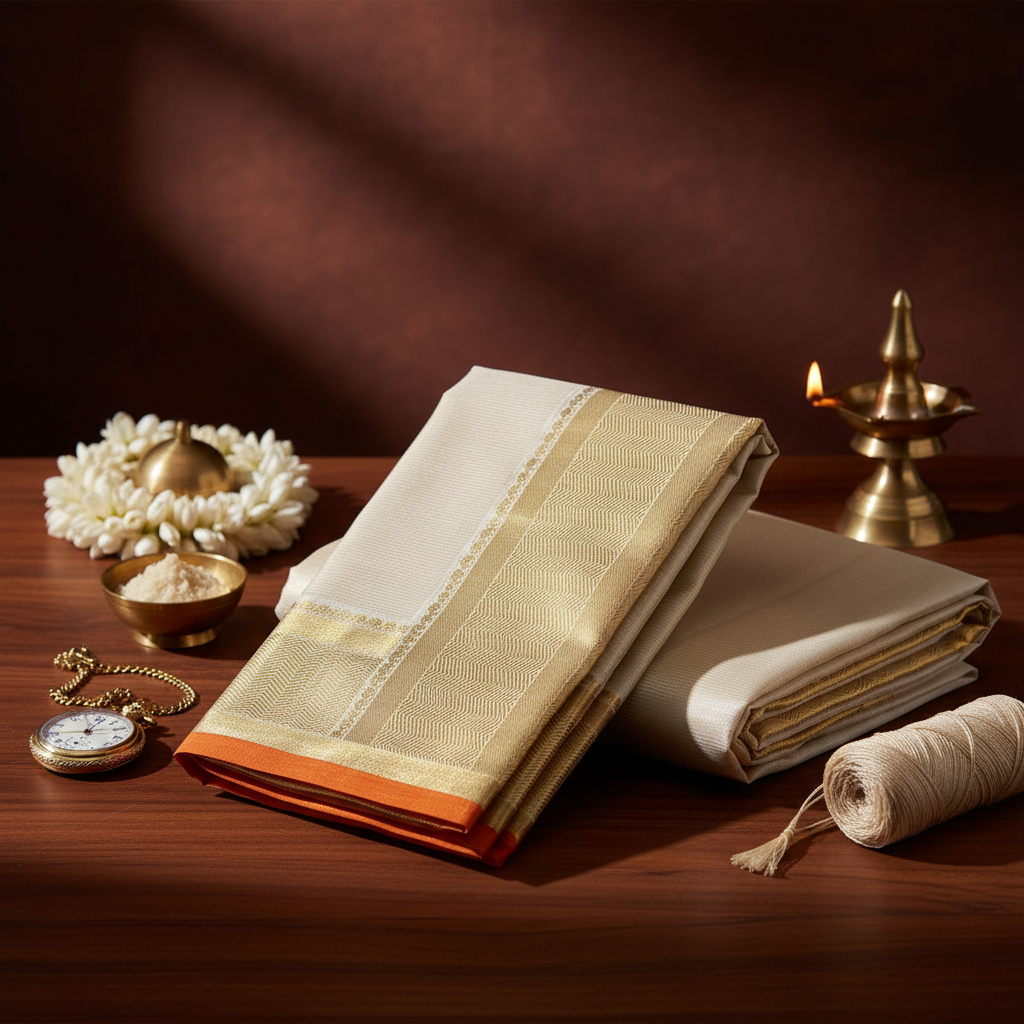 Kuberan Cream Pure Silk Dhoti Gold Zari Border