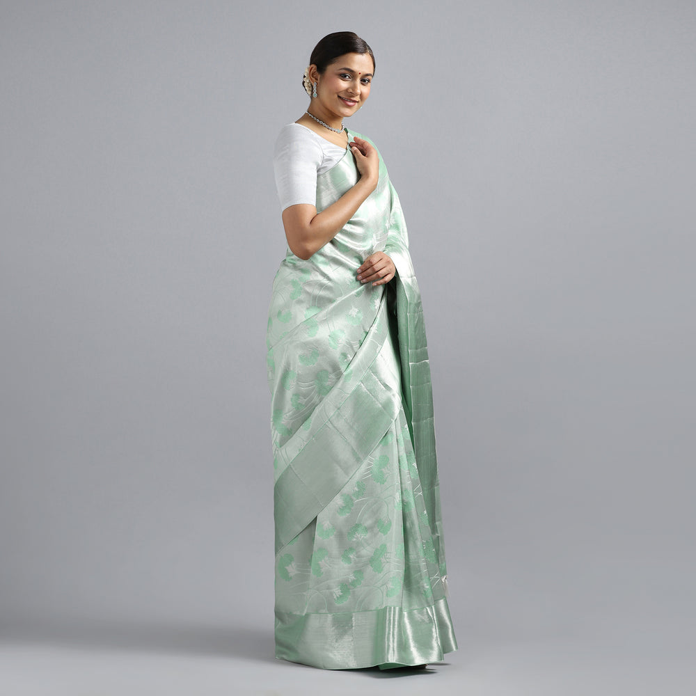 Kuberan Silver Teal Blue Kanchivaram Saree