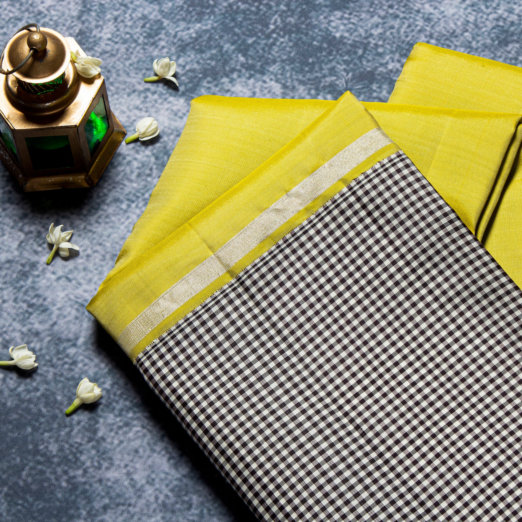 Kuberan Olive Yellow White And Black Checks Border Kanchivaram Saree