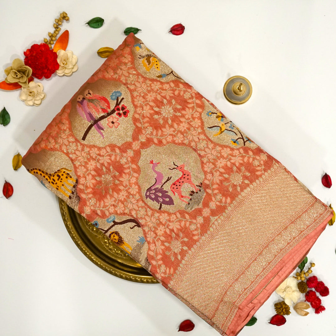KUBERAN ORANGE BANARAS SATIN SAREE.