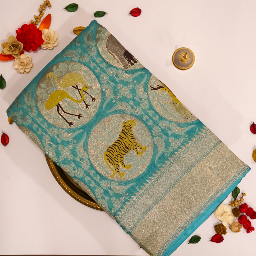 KUBERAN BLUE BANARAS SATIN SAREE.