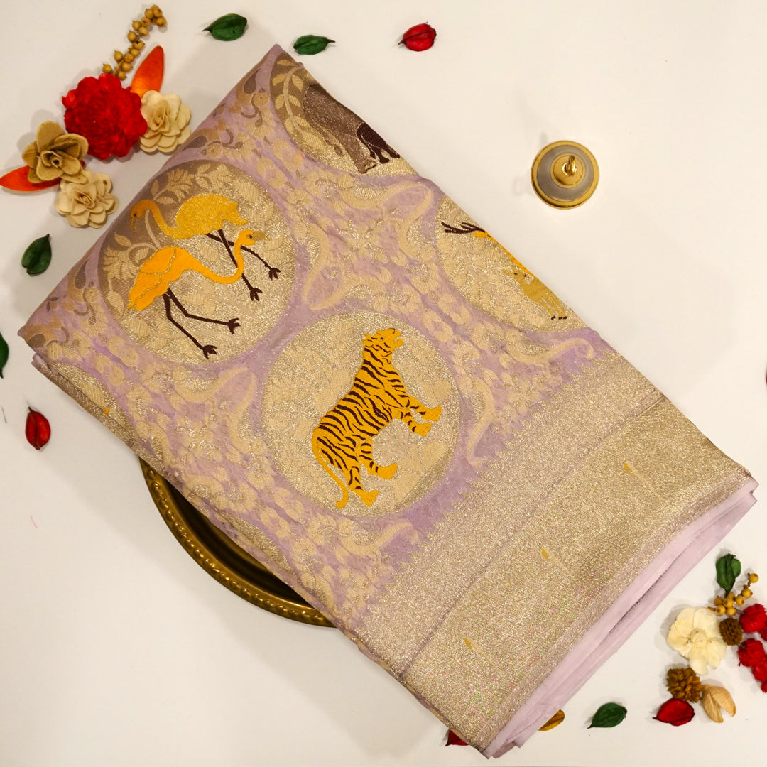 KUBERAN LAVENDER BANARAS SATIN SAREE.