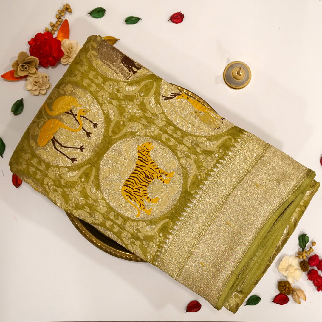 KUBERAN GREEN BANARAS SATIN SAREE.
