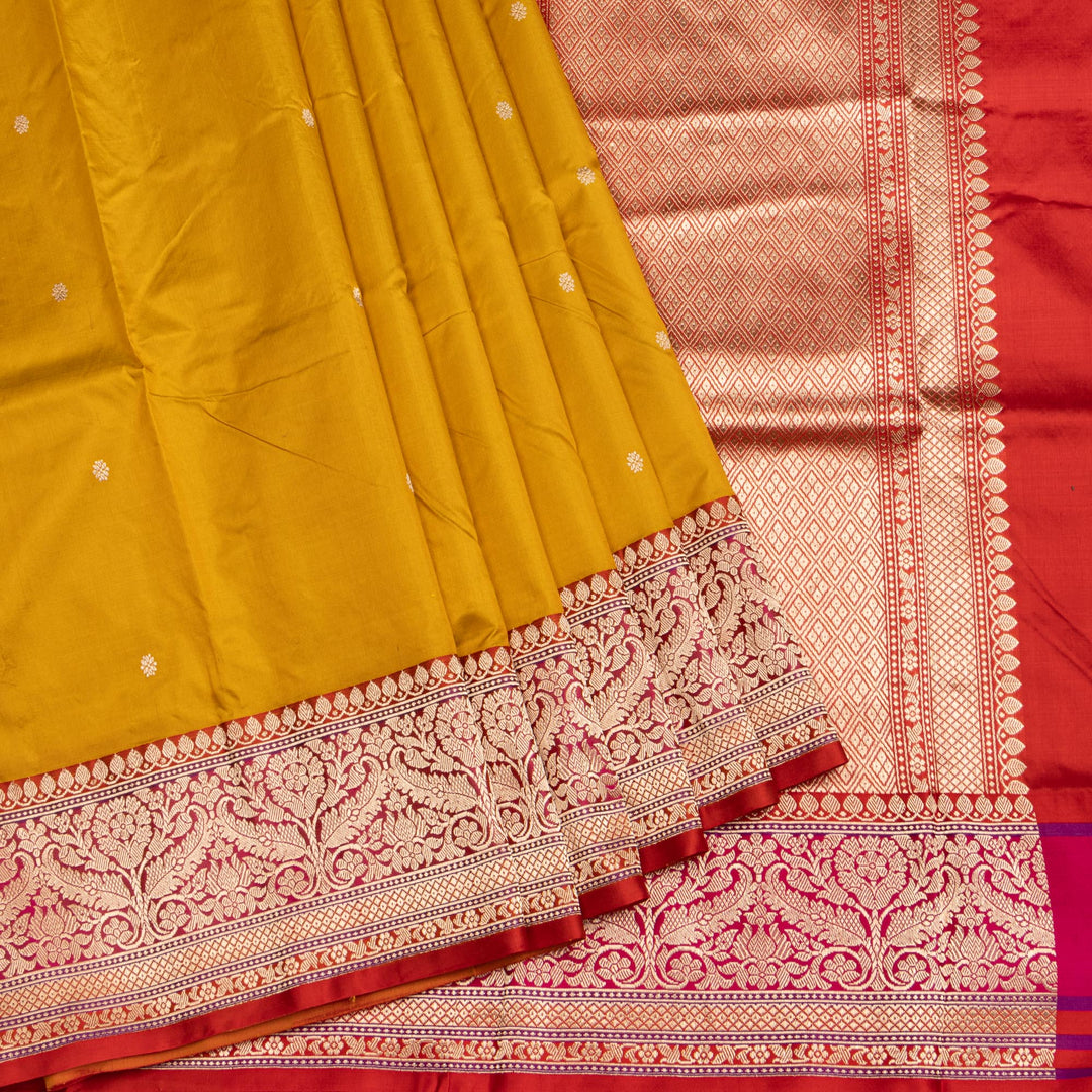 Kuberan Mustard With Red Border Banarasi Silk Saree