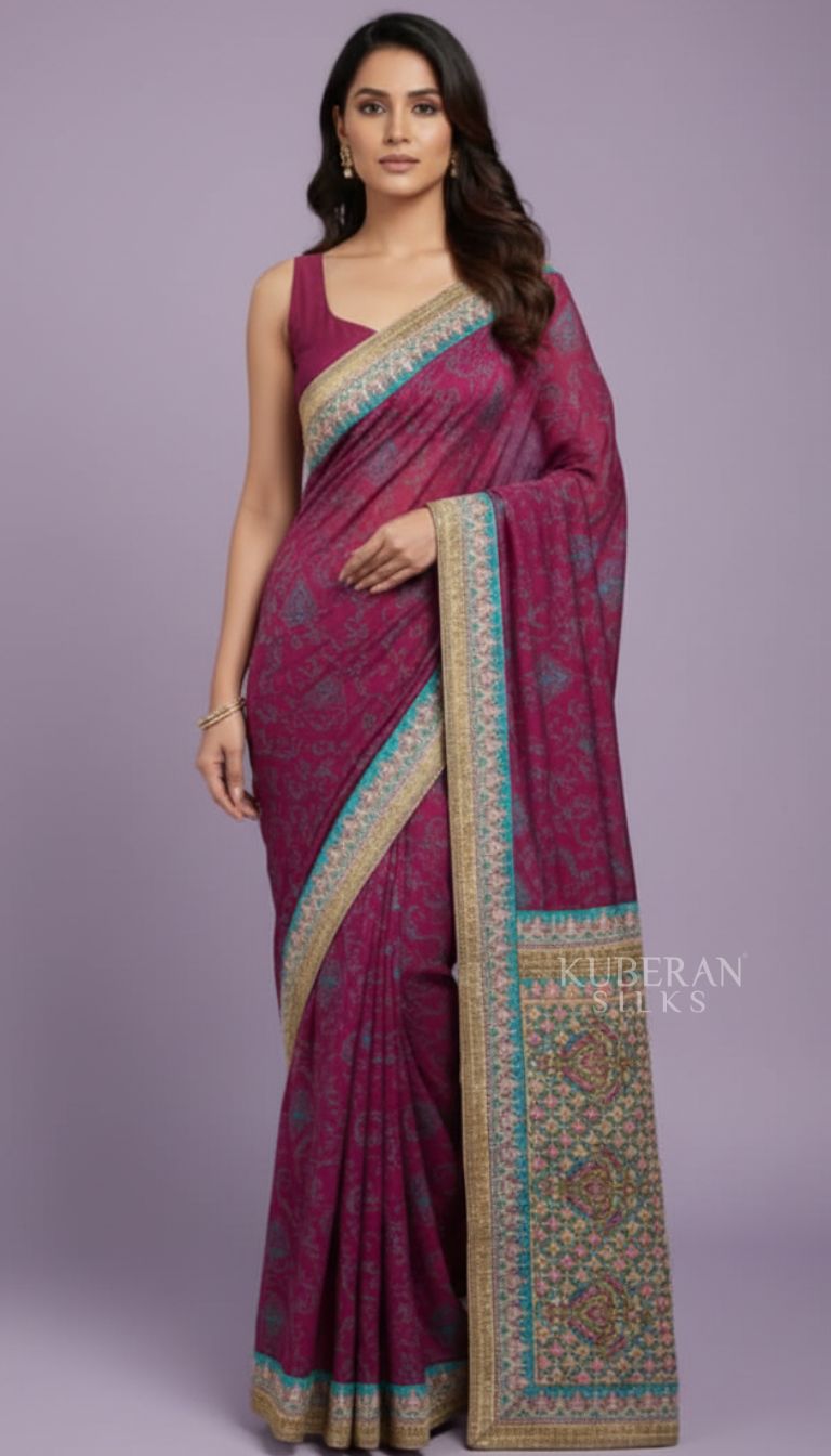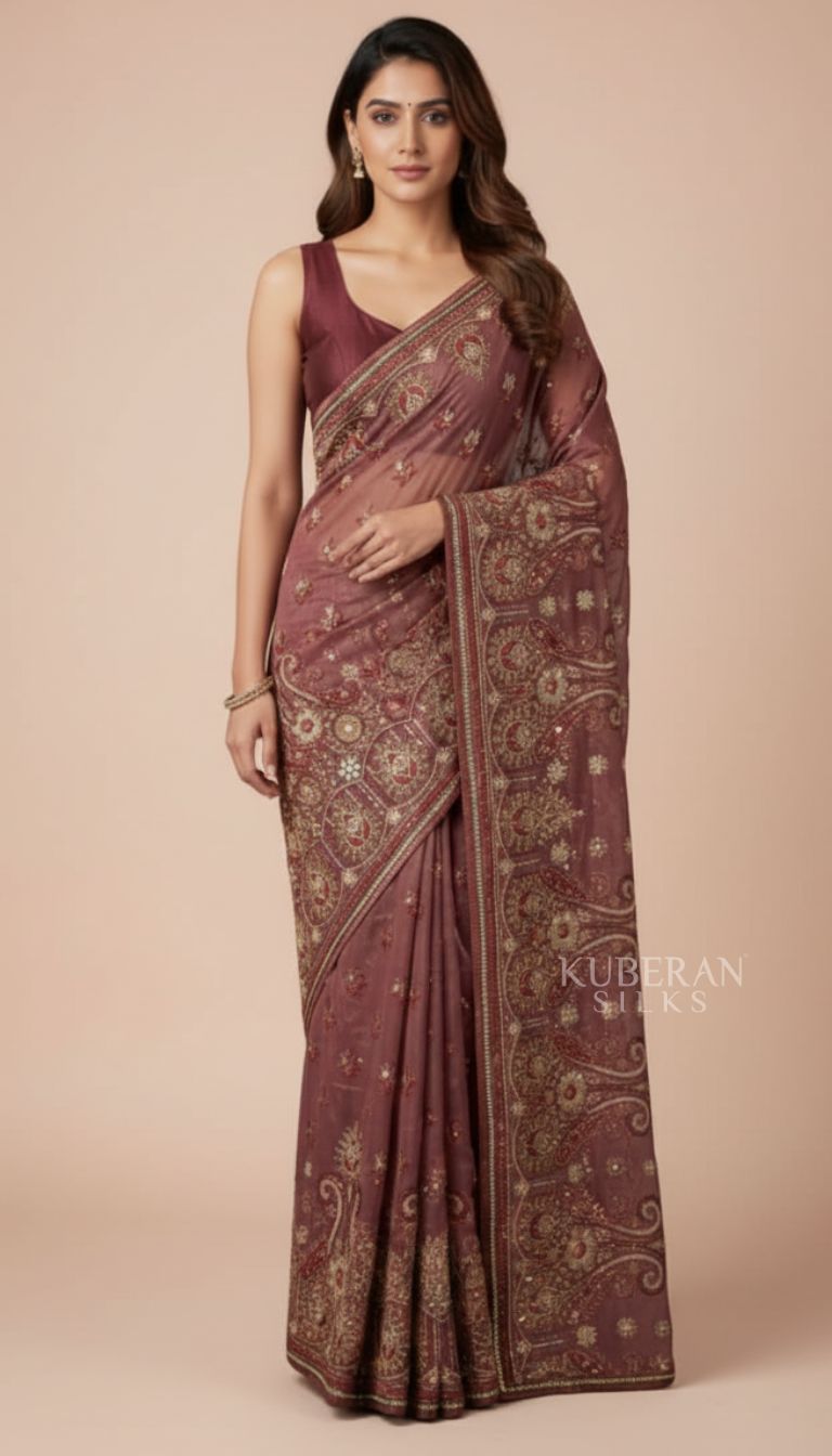 Kuberan Mauve Rose Embroidered Saree