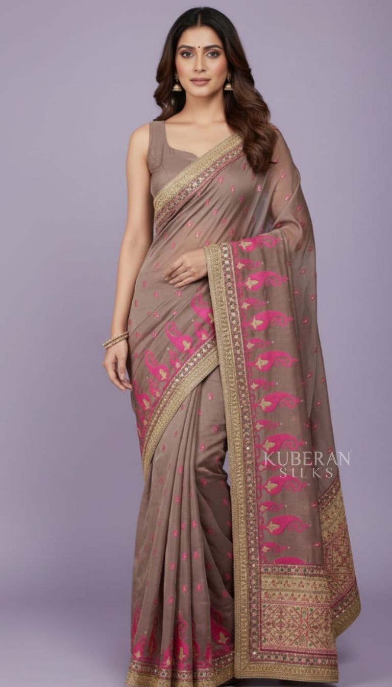 Kuberan embroidery Grey Pink Saree