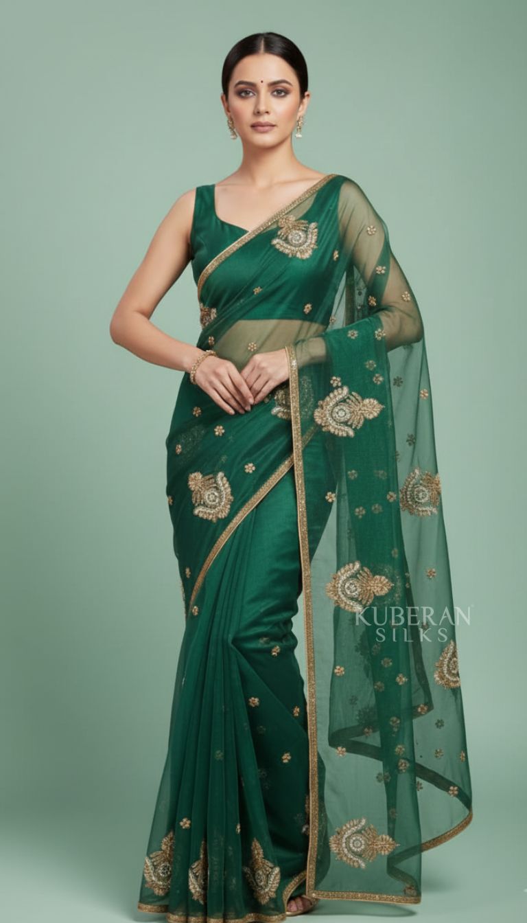 Kuberan Emerald Green Embroidered Saree with Golden Work