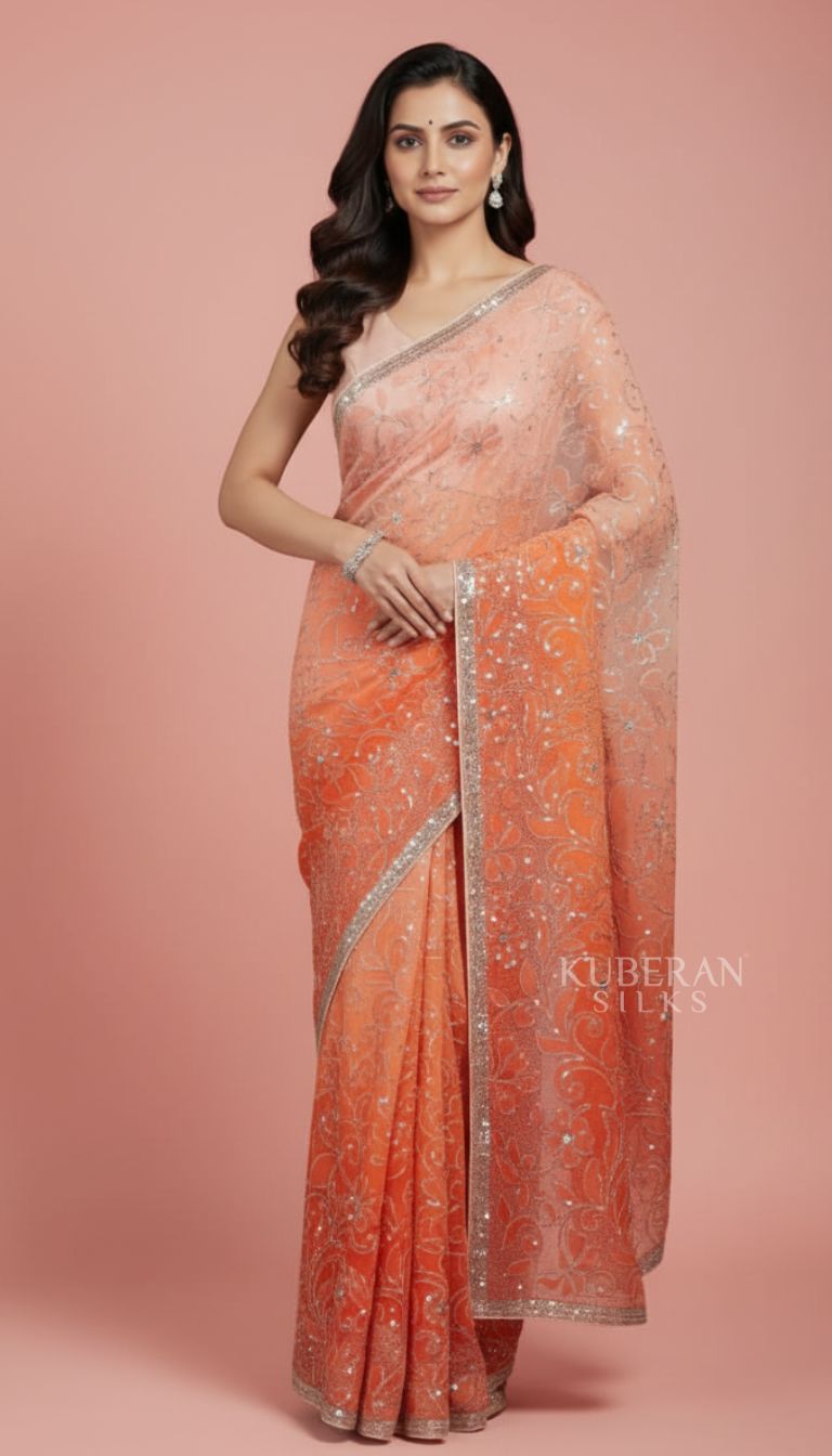 Kuberan Stunning Peach-Orange Ombre Saree with Sequin Work