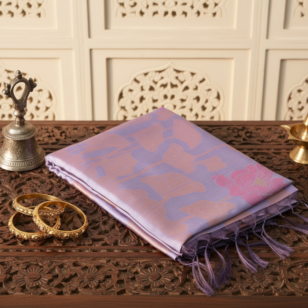 Lavender raw Silk Saree with Floral Motifs
