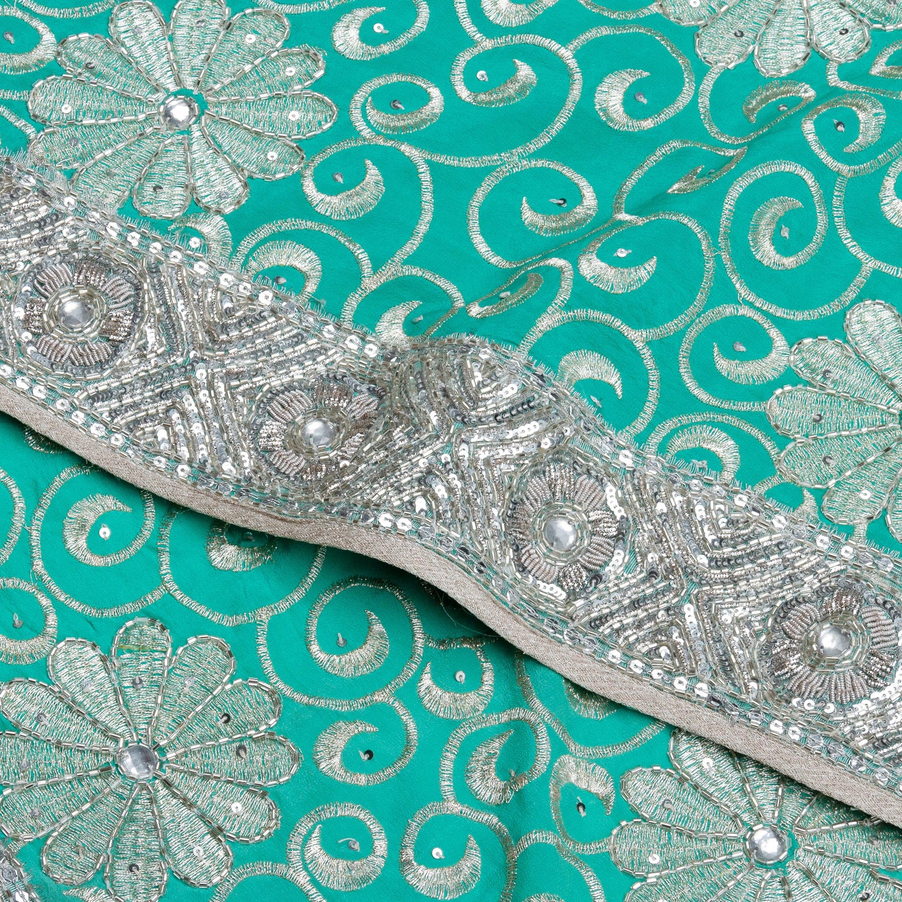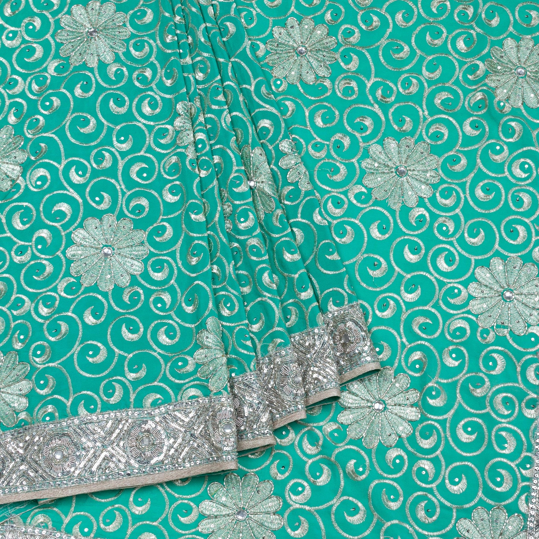 Hey, grab the latest collections from the house of KUBERAN. This saree is a hand-embroidered saree which is a must-have for all special occasions. This saree is a Blue color with beautiful Sequence, Kundan and stonework designer saree which gives a royal look to the wearer, don't miss this saree to add to your wardrobe. This saree is a set with an unstitched embroidered blouse.
