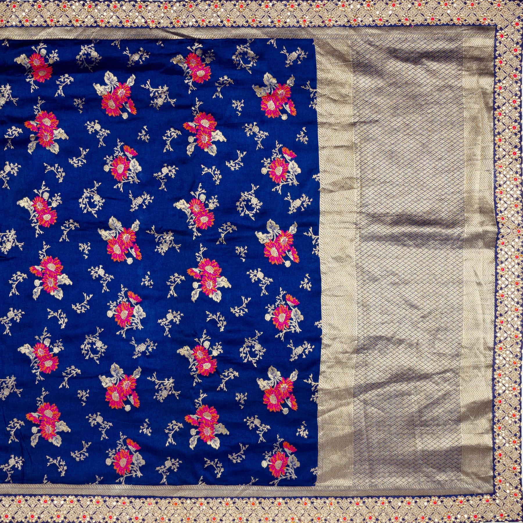 Hey, grab the latest collections from the house of KUBERAN. This saree is a hand-embroidered saree which is a must-have for all special occasions. This saree is a Navy Blue color with beautiful lace work designs which gives a royal look to the wearer, don't miss this saree to add to your wardrobe. This saree is a set with a stitched embroidered blouse.