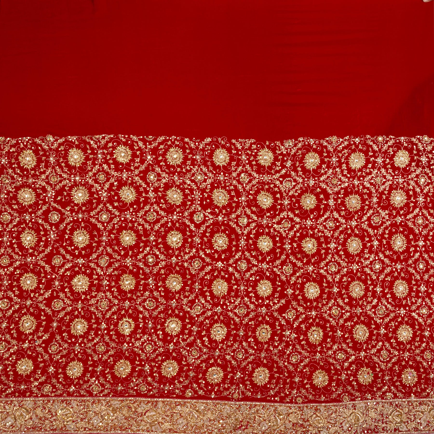 Hey, grab the latest collections from the house of KUBERAN. This saree is a hand-embroidered saree which is a must-have for all special occasions. This saree is a bright Red with beautiful zardozi and Kundan gives a royal look to the wearer, don't miss this saree to add to your wardrobe. This saree is a set with an unstitched embroidered blouse.