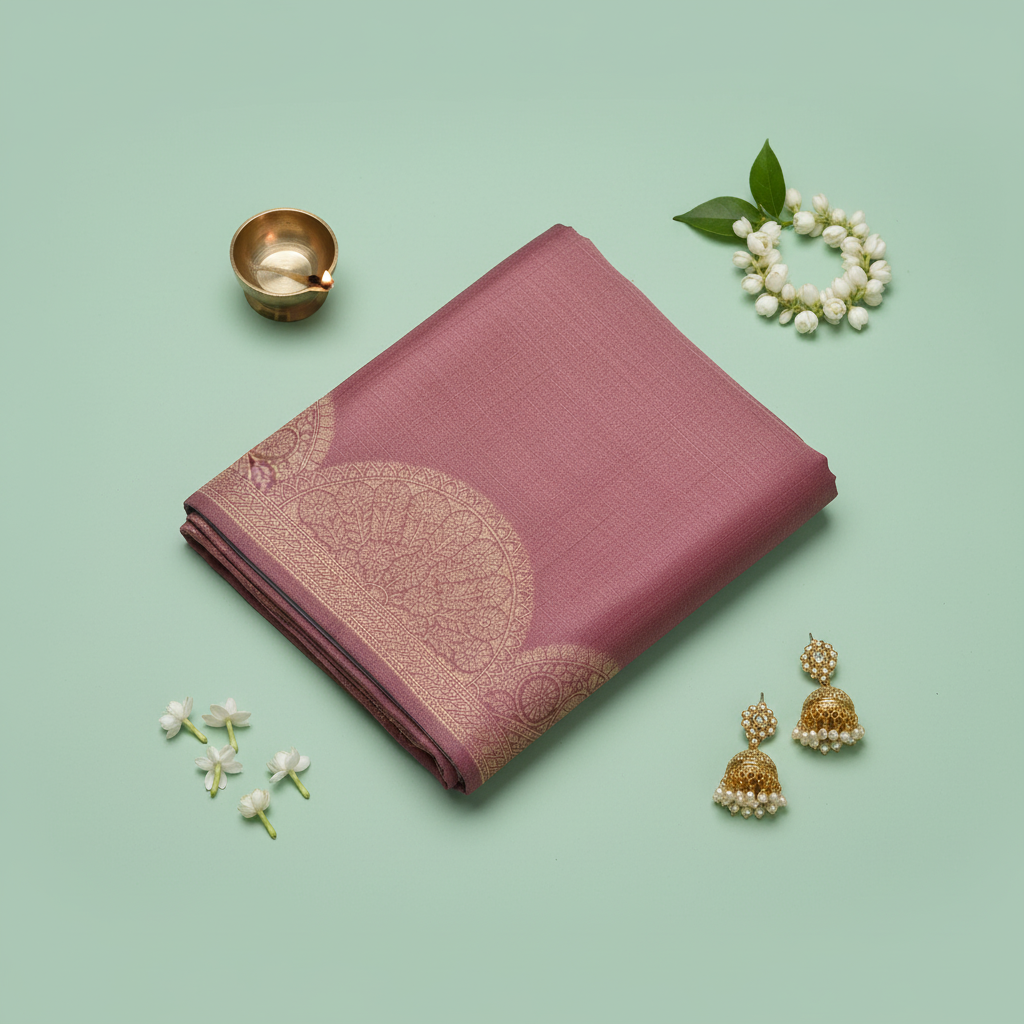 Exquisite pink RAW silk saree featuring intricate work with traditional circular motifs. This premium saree showcases the timeless craftsmanship of South Indian weaving, perfect for weddings, festivals, and special occasions.