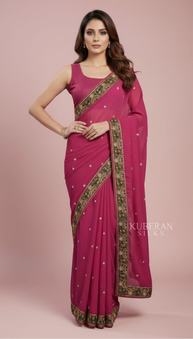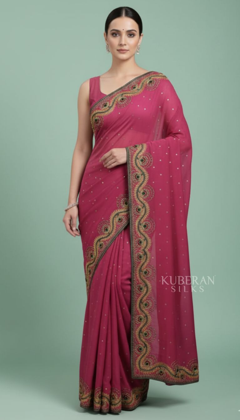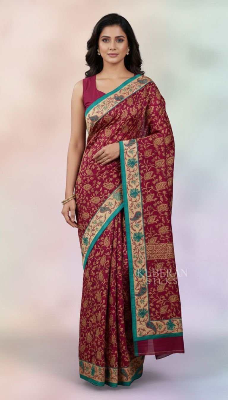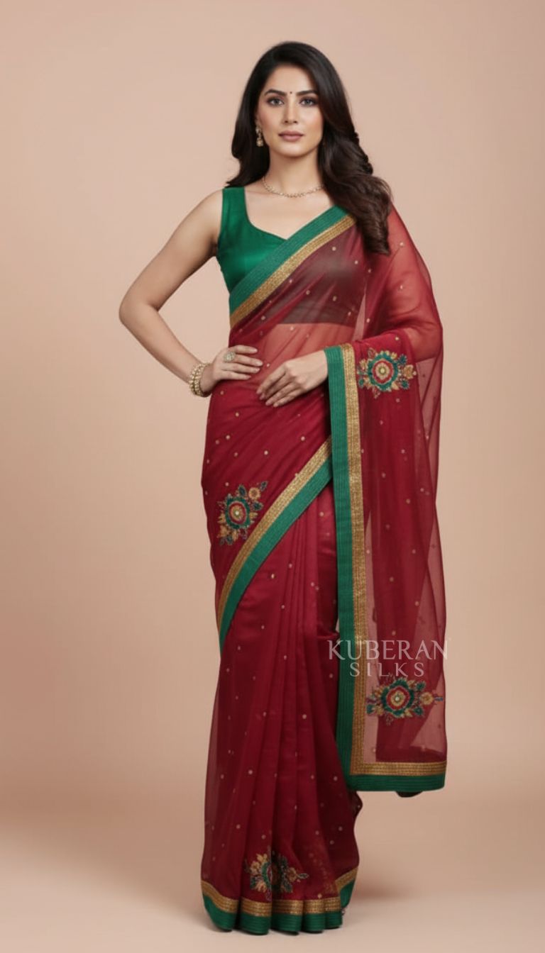 Kuberan Premium Maroon Embroidery Saree with Traditional Border