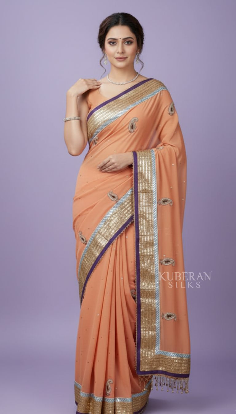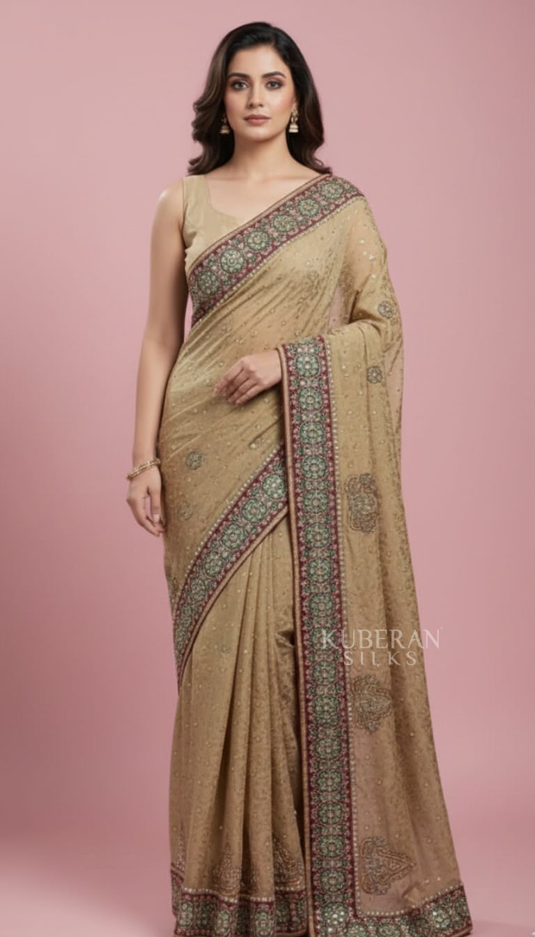 Kuberan Golden Beige Saree with Intricate Embroidery