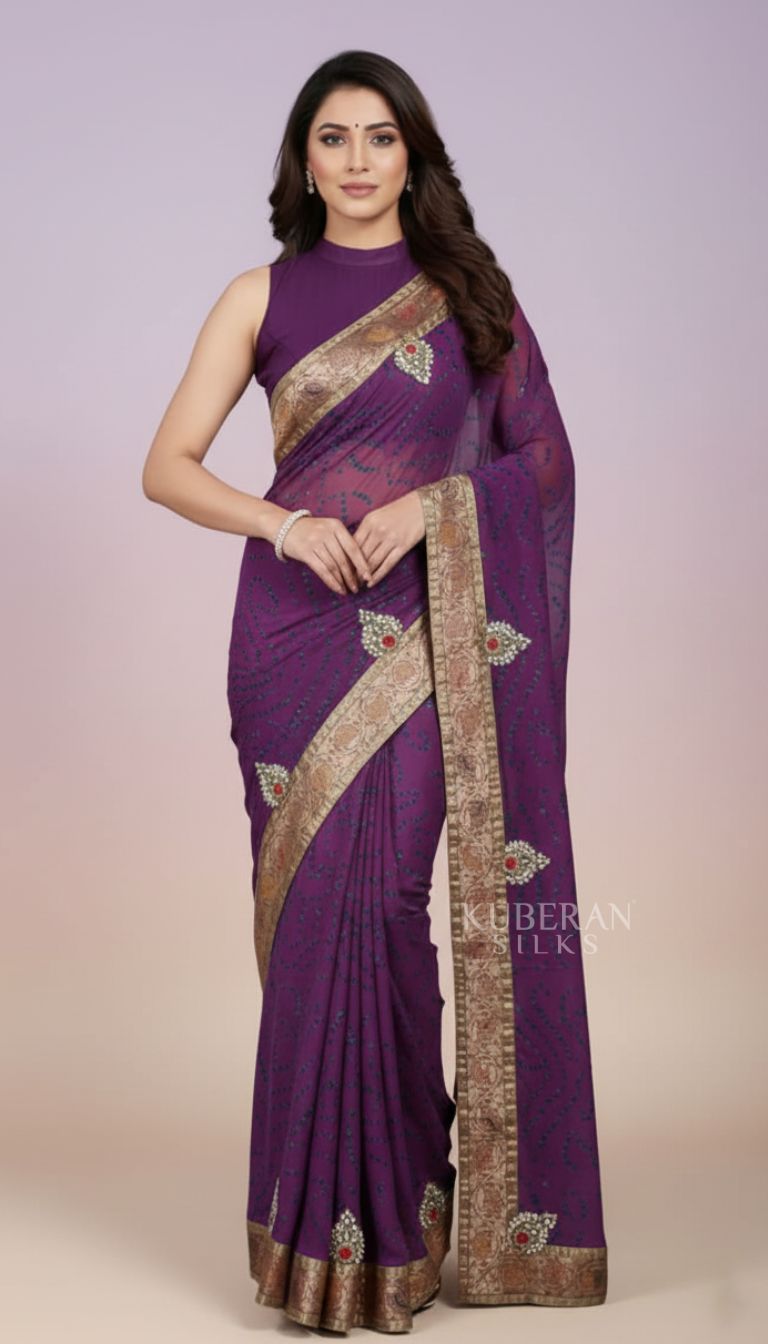 KUBERAN WHITE AND PURPLE EMBROIDERY SAREE