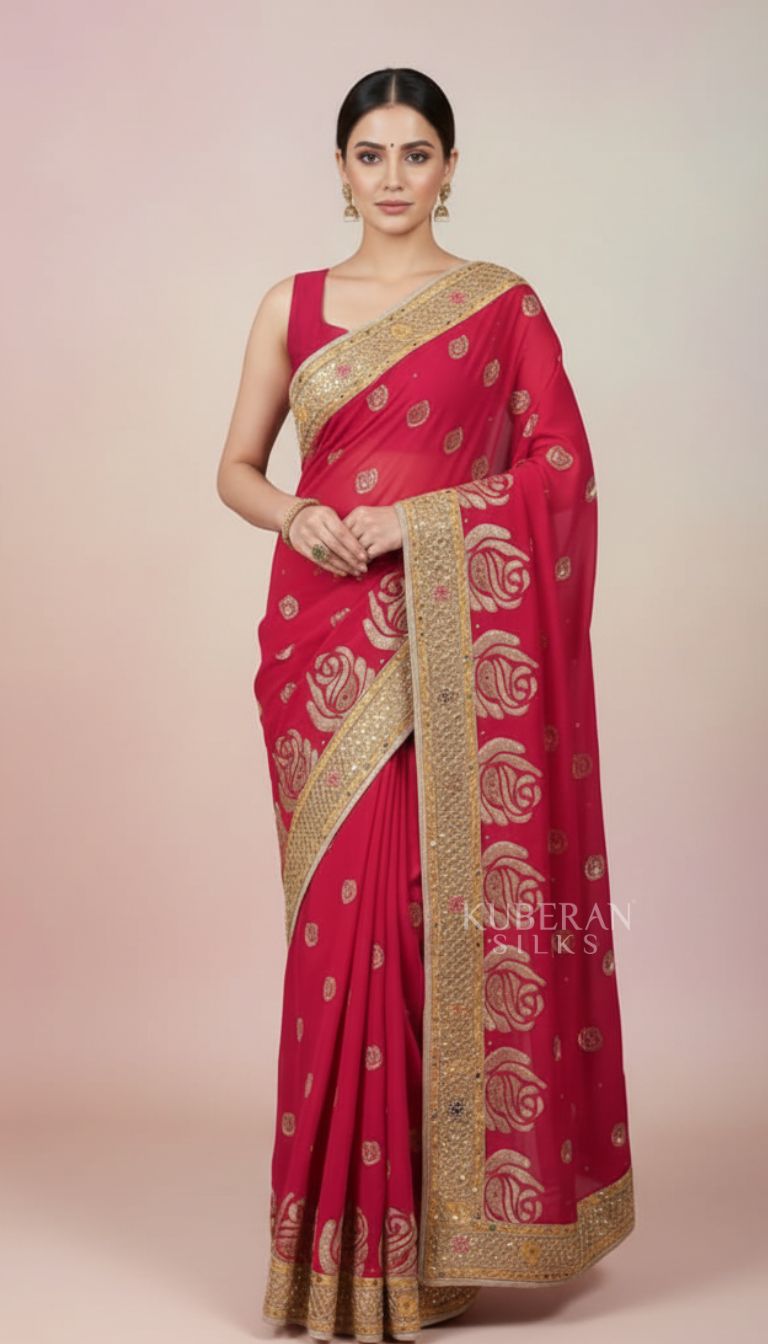 KUBERAN NEON PINK EMBROIDERY SAREE