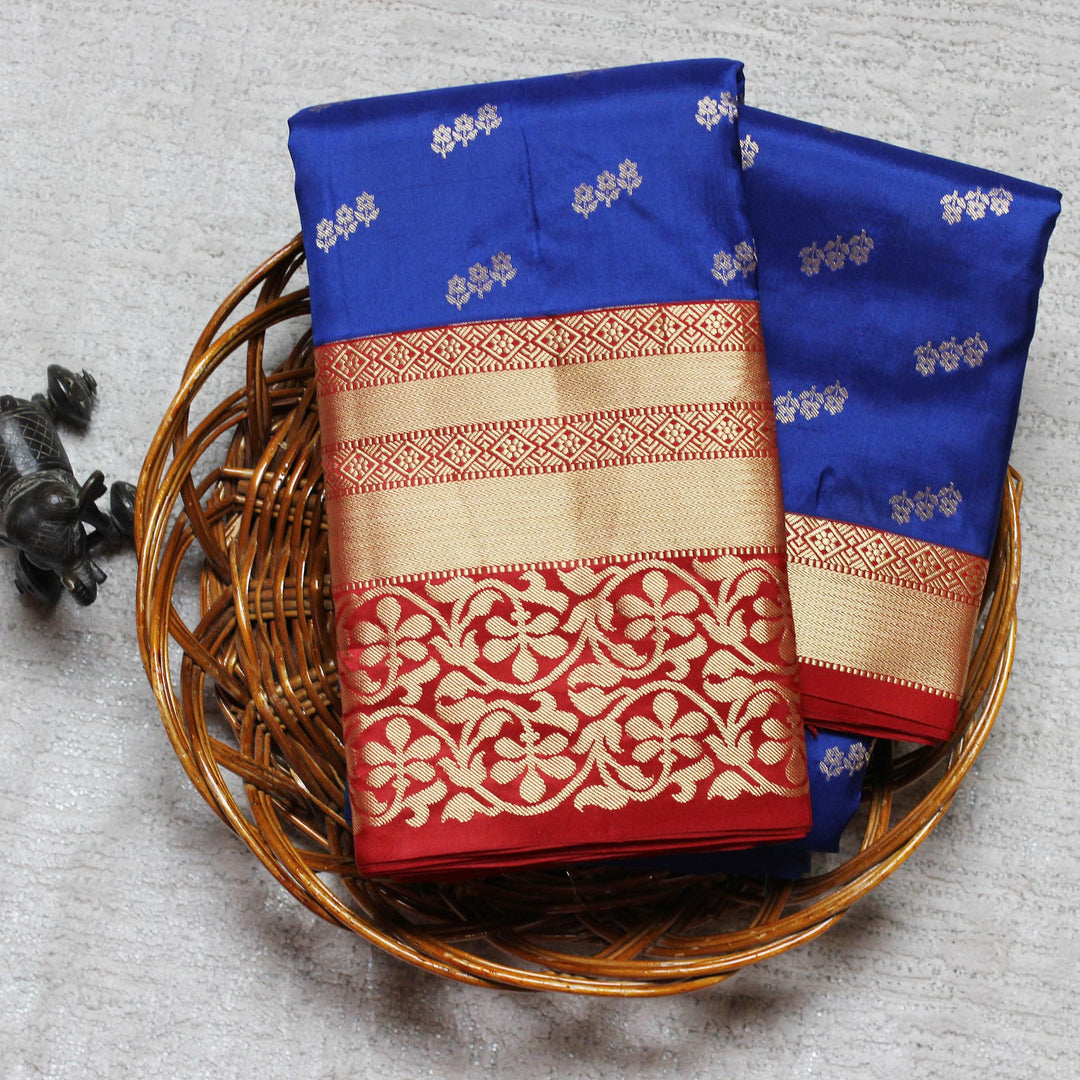 Kuberan Pochampally Navy Blue With Pink Border Silk Sarees