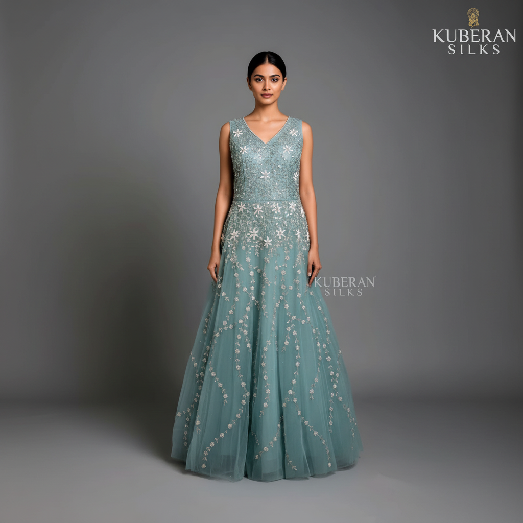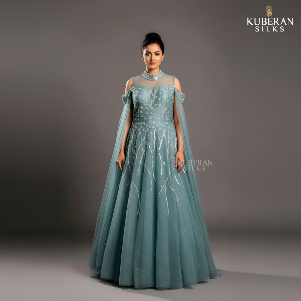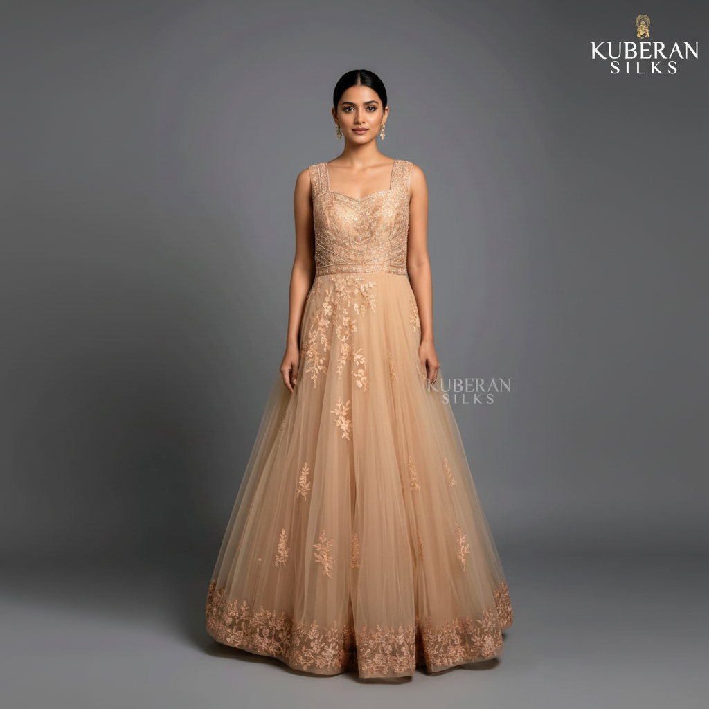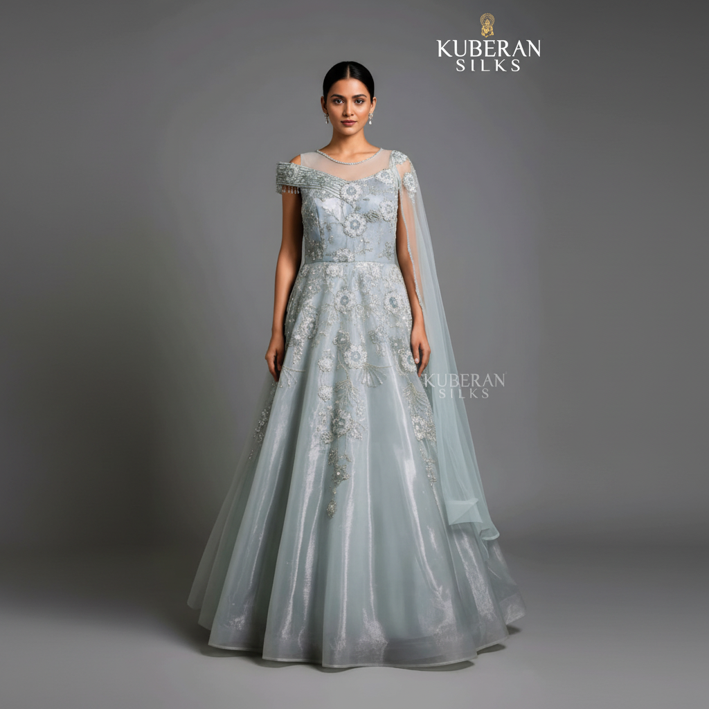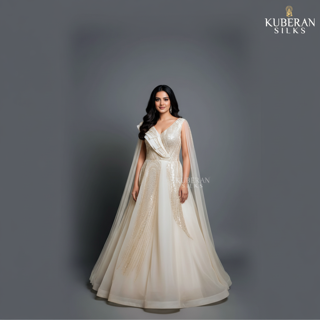 Discover the perfect fusion of traditional Indian elegance and contemporary Western silhouettes in our curated Indo-Western gown collection. Each piece celebrates the artistry of heritage craftsmanship reimagined for the modern woman.
