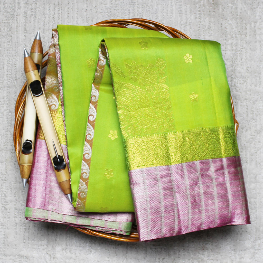 Kuberan Rama Green Pink Pure Soft Silk Saree