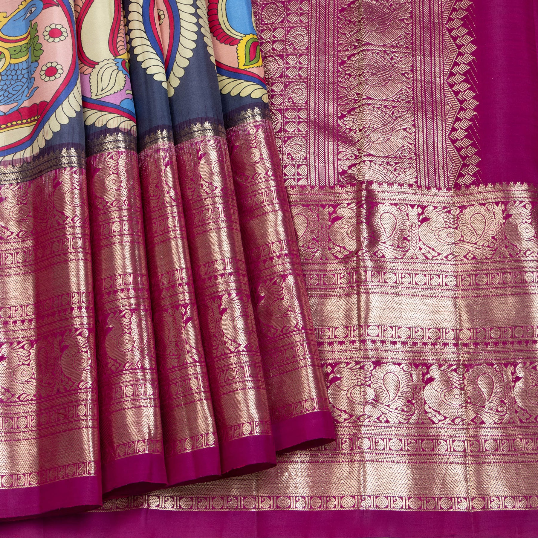 Kuberan Blue Kalamkari Prints Kanchipuram Silk Sare