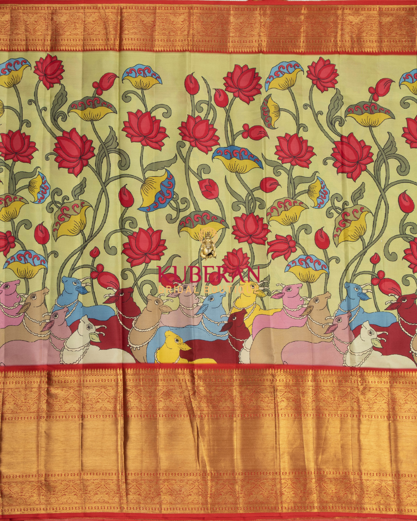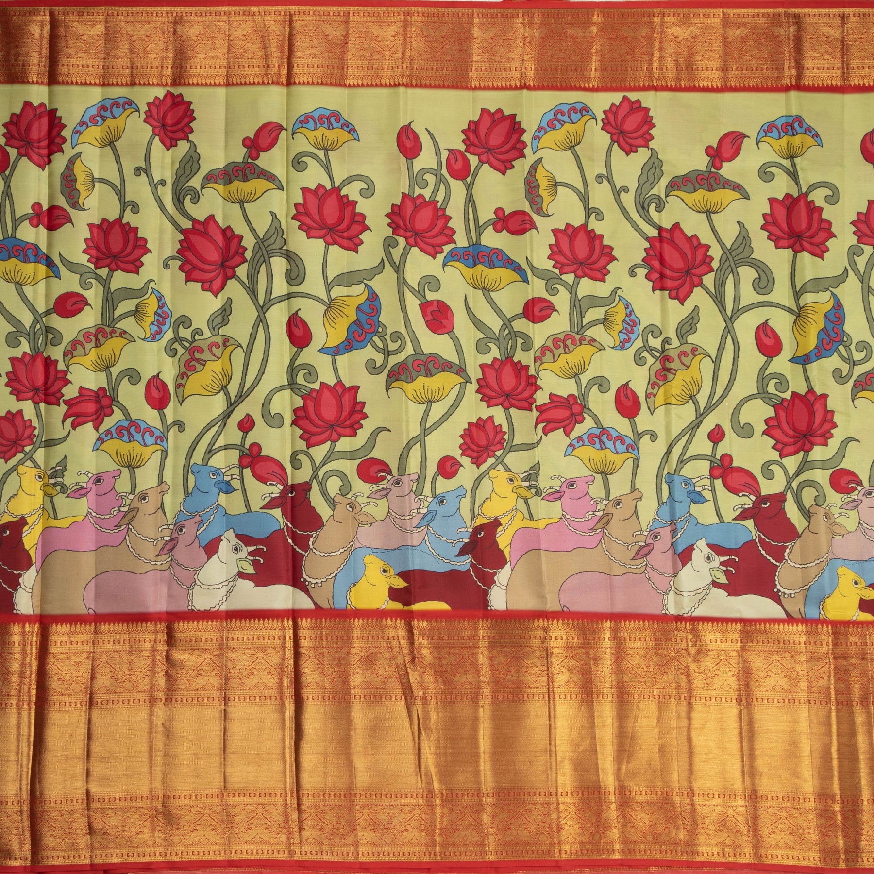 Kuberan Green Kalamkari Prints Kanchipuram Silk Saree