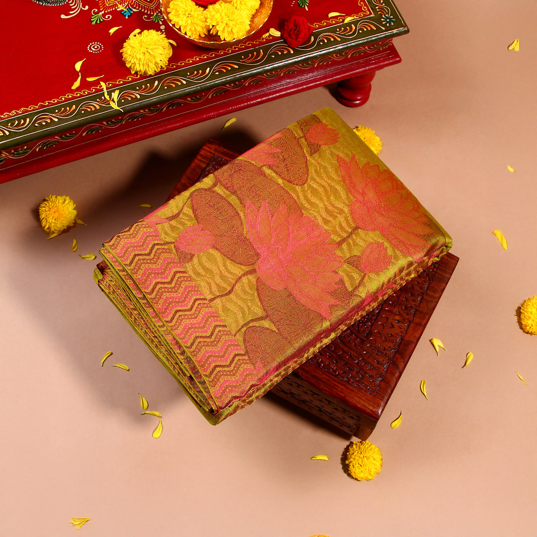 Kuberan green lotus Kanchivaram Saree