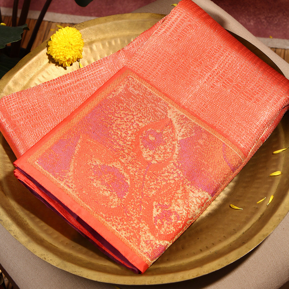 Kuberan orange peach Kanchivaram Saree