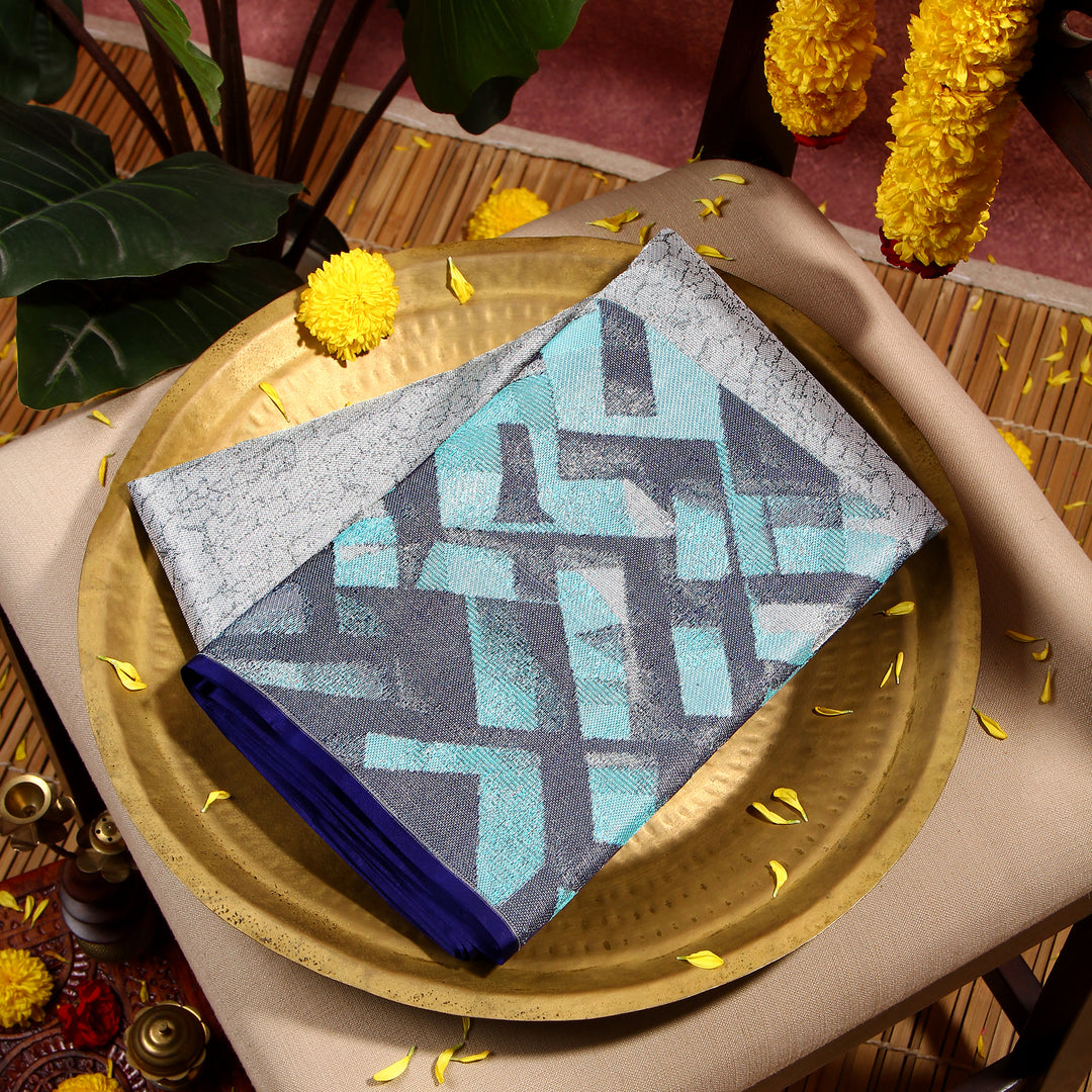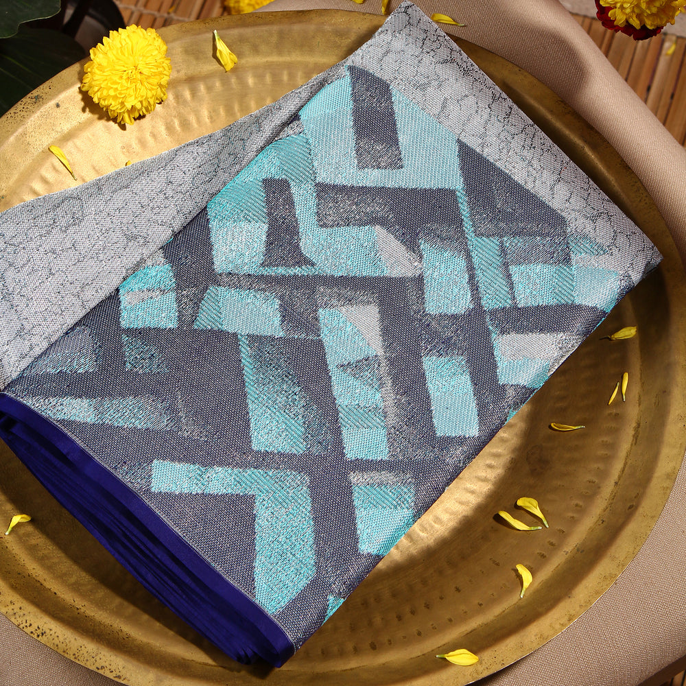 Kuberan silver blue Kanchivaram Saree