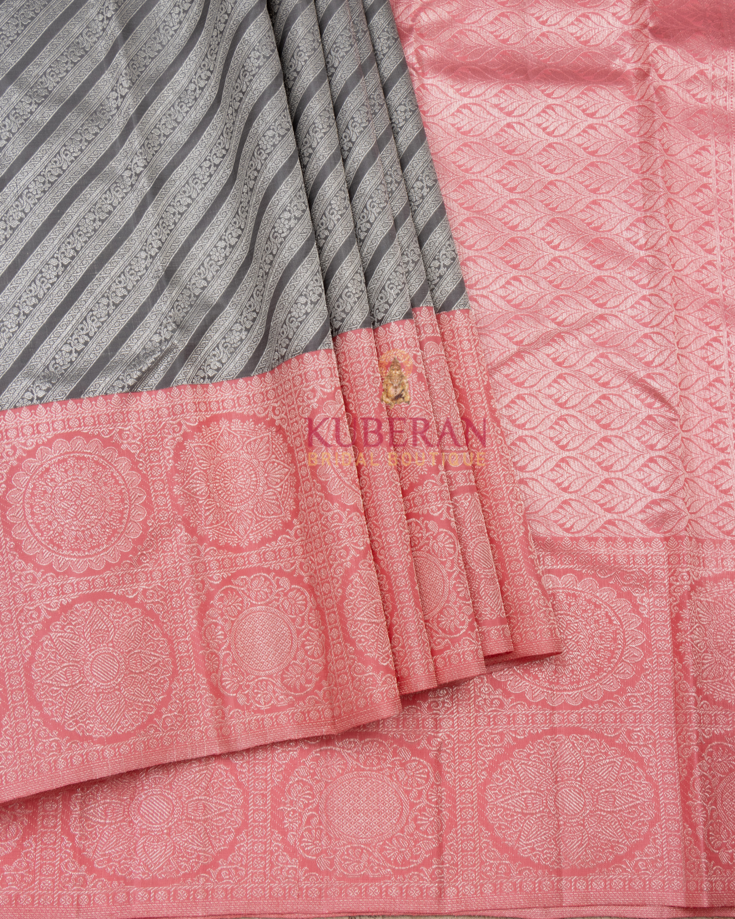 Kuberan Black With Pink Border Kanchivaram Silk Saree