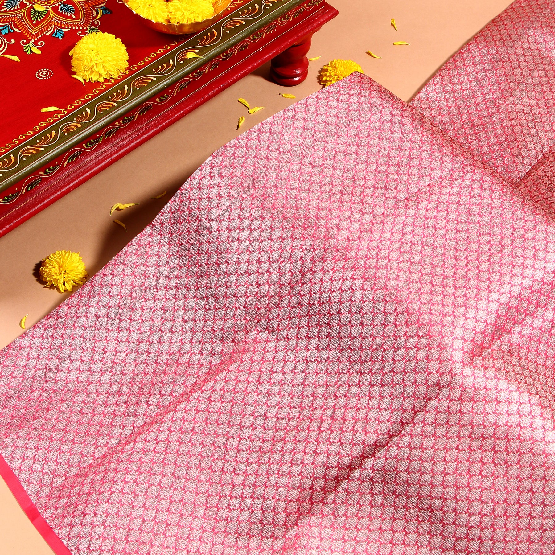 Elevate your style with the Kuberan Pinkish Brown Kanchivaram Saree. Inspired by the beauty of a lotus pond, the border boasts intricate zari work. The elegant all-over design is a testament to its premium quality. Make a statement with this sophisticated and exclusive saree.